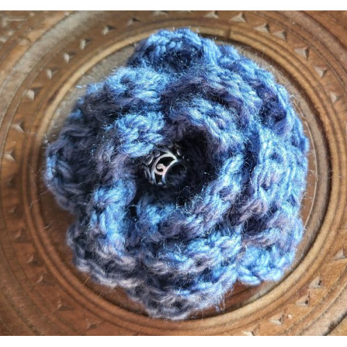 Brooch - Crocheted Flower, Denim Blue