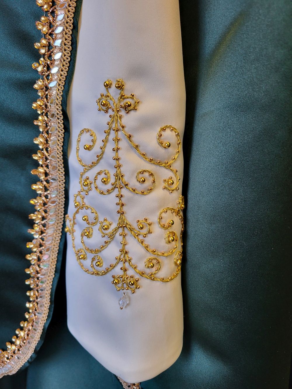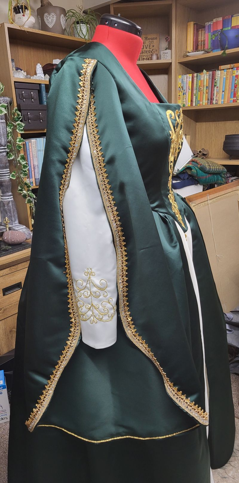 This dress was commissioned by a very special lady. She wanted a dress to fit in with her vision for their fantasy themed wedding, so together we designed this creation to reflect what she could see in her mind's eye. She was involved with the whole production process as it evolved, until this beautiful, unique statement piece came to life. Their wedding featured in an edition of Cheshire Brides, and so the dress was showcased to the wider community in all of its glory!