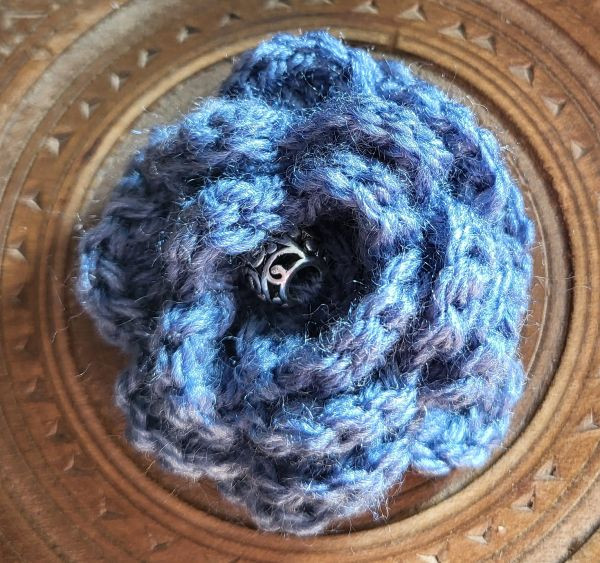 Brooch - Crocheted Flower, Denim Blue