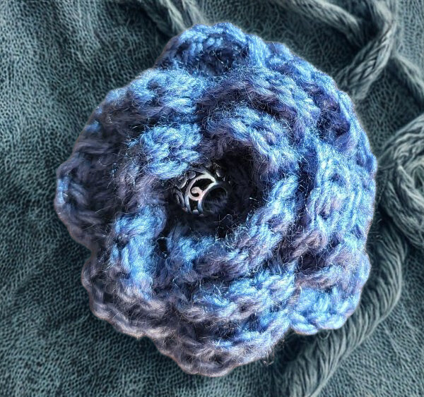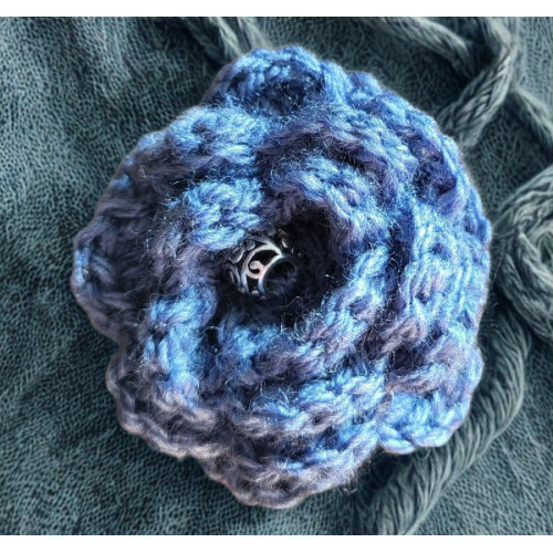 Brooch - Crocheted Flower, Denim Blue