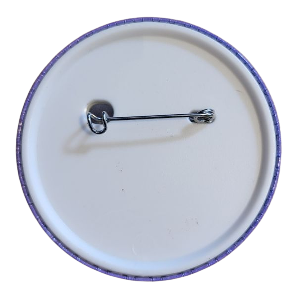 The badge measures 58mm across the diameter. It is attached by a safety pin back.