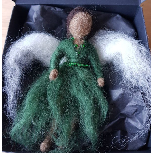 For care of your fairies, try to handle as little as possible as excess handling could lead to the fluffy, unfelted parts of the fairy (wings, hair and skirts) felting and matting, which may detract from the look of your fairy. Do not try to wash your fairies. When not on display they would be best kept individually boxed in a dry place.